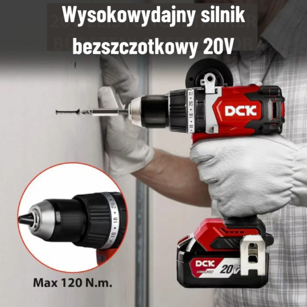 Akumulatorowa wiertarko-wkrętarka udarowa DCK Tools KDJZ03-13 to idealny wybór do wymagających zastosowań. Dzięki mocnemu silnikowi bezszczotkowemu, momentowi obrotowemu 120Nm oraz 3 trybom wiercenia to narzędzie oferuje wszechstronność i precyzję w pracy z betonem, drewnem i stalą.