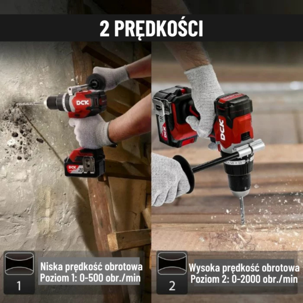 Funkcje akumulatorowej wiertarko-wkrętarki udarowej DCK Tools KDJZ03-13 20V 13mm 120Nm – 1×4.0Ah