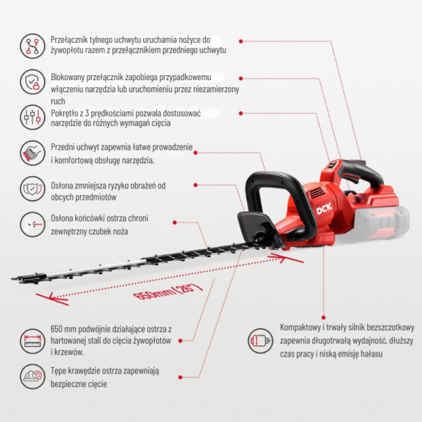 DCK Tools Akumulatorowe nożyce do żywopłotu 58V 650 mm z 2×2,5 Ah KDHT58261EK