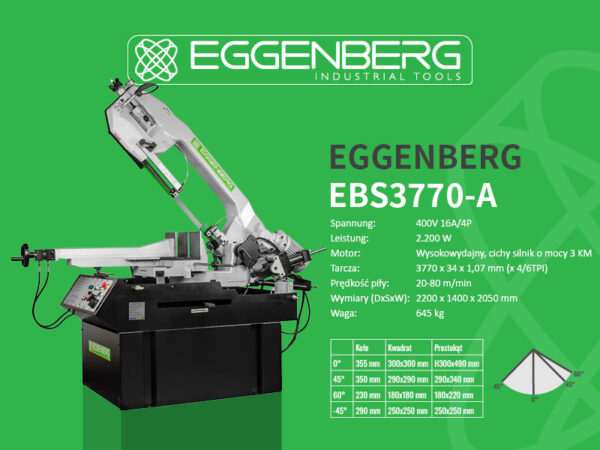 • Eggenberg EBS3770-A Hydrauliczna półautomatyczna piła taśmowa 400V