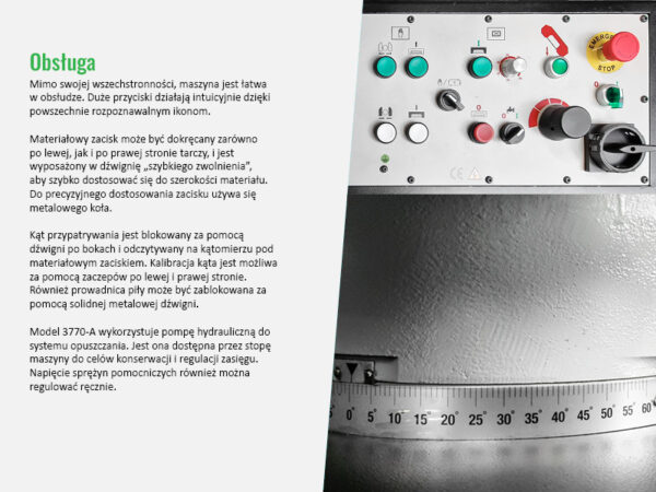 Cechy Eggenberg EBS3770-A Hydraulicznej półautomatycznej przecinarki taśmowej 400V